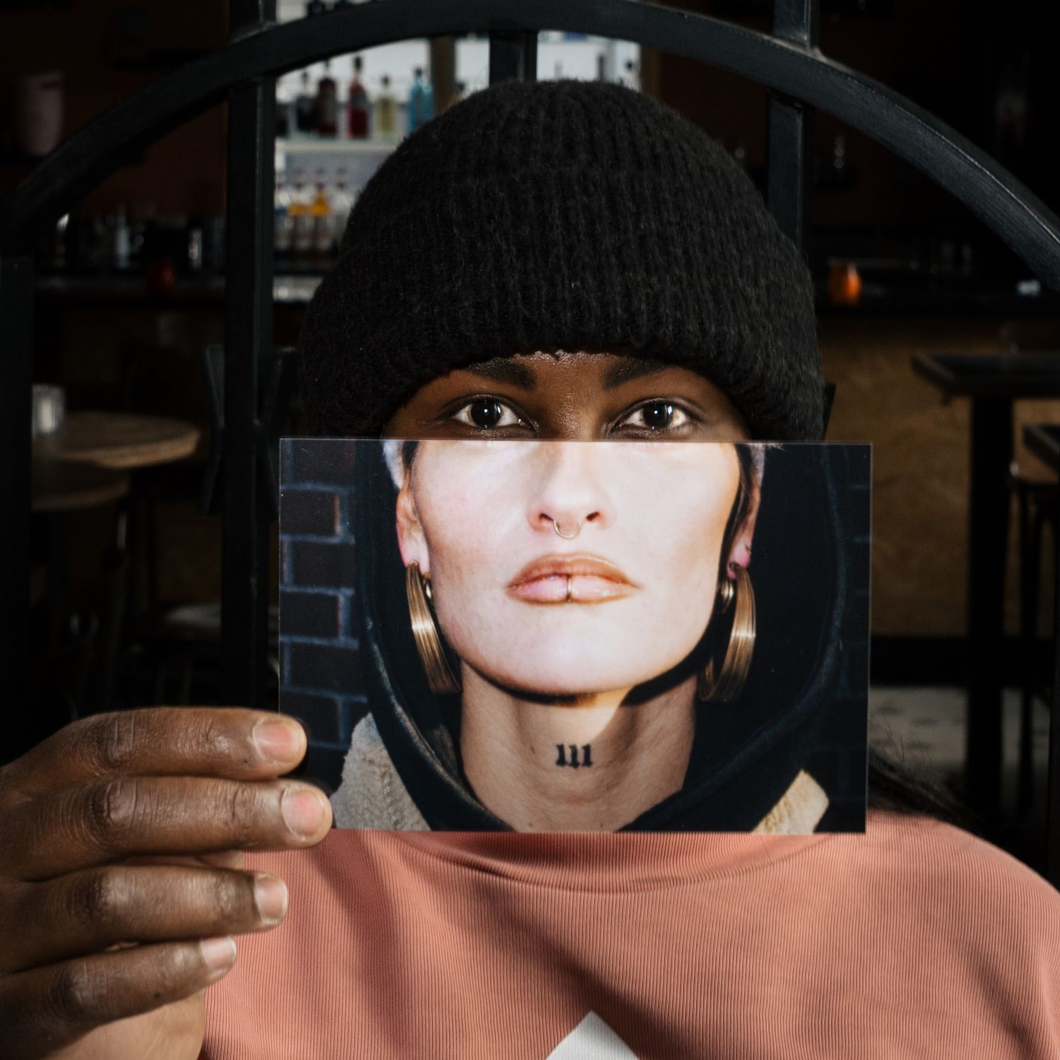 Tilte: 01/111 (2025) Photograph is part of the documentary project Mind Gap. The project was created in Oslo, but it explores a universal issue tied to multicultural coexistence: generalisation, stereotypes and subtle racism. Method: Half-face portraits made in diverse neighbourhoods were later combined by strangers from other parts of the city, producing hybrid faces with new identities. Paired with personal statements on these topics, project forms a complex polyphony of images and opinions.