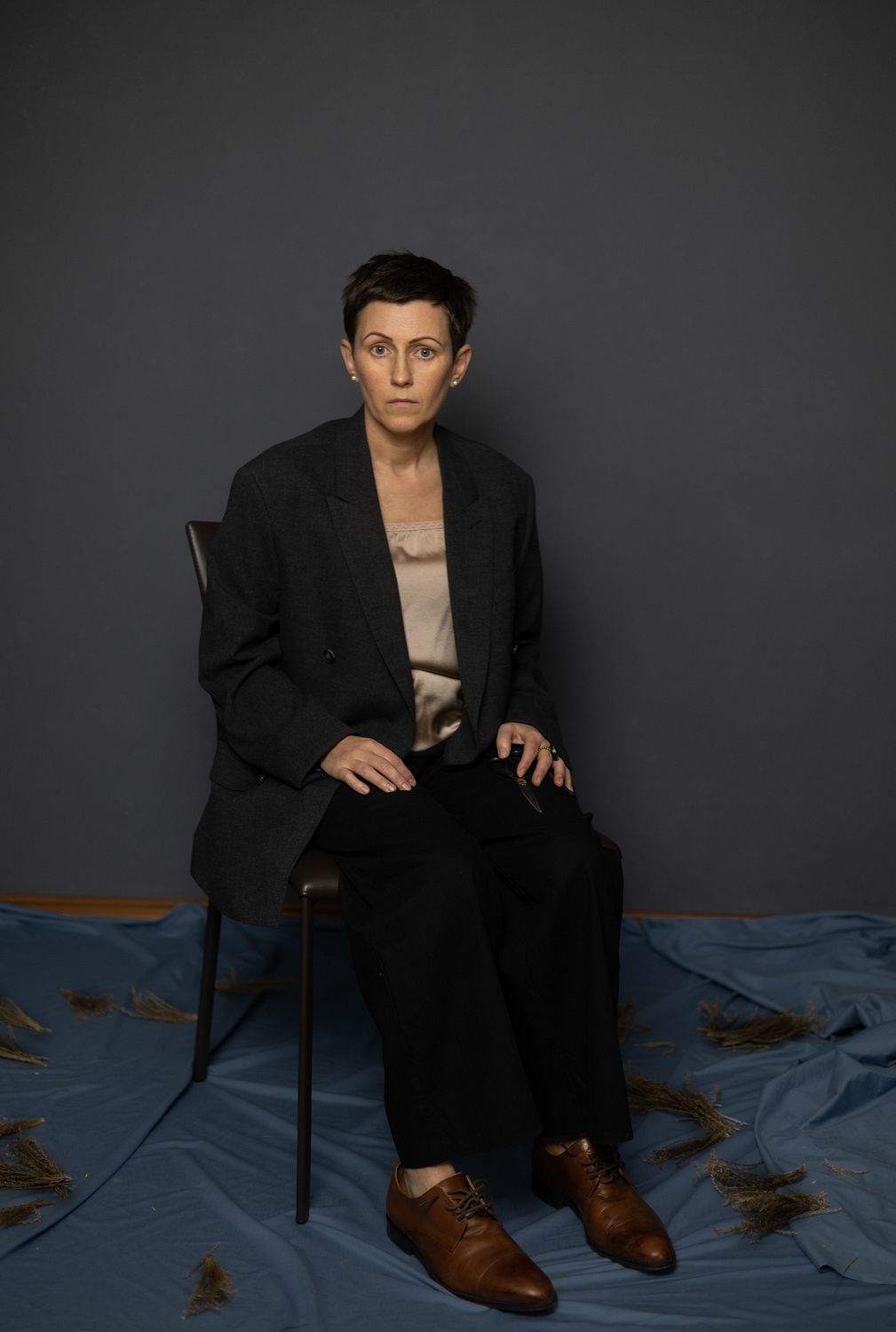How often do we women put on this "I'm strong" costume? We cut our hair, as if cutting away our fears. We sit up straight, tensing ourselves into a single line. We hide our vulnerability under a man's jacket, under heavy shoes, under a calm gaze that must withstand everything. And how many times in this silence do we ask ourselves: is this strength... or the need to survive?