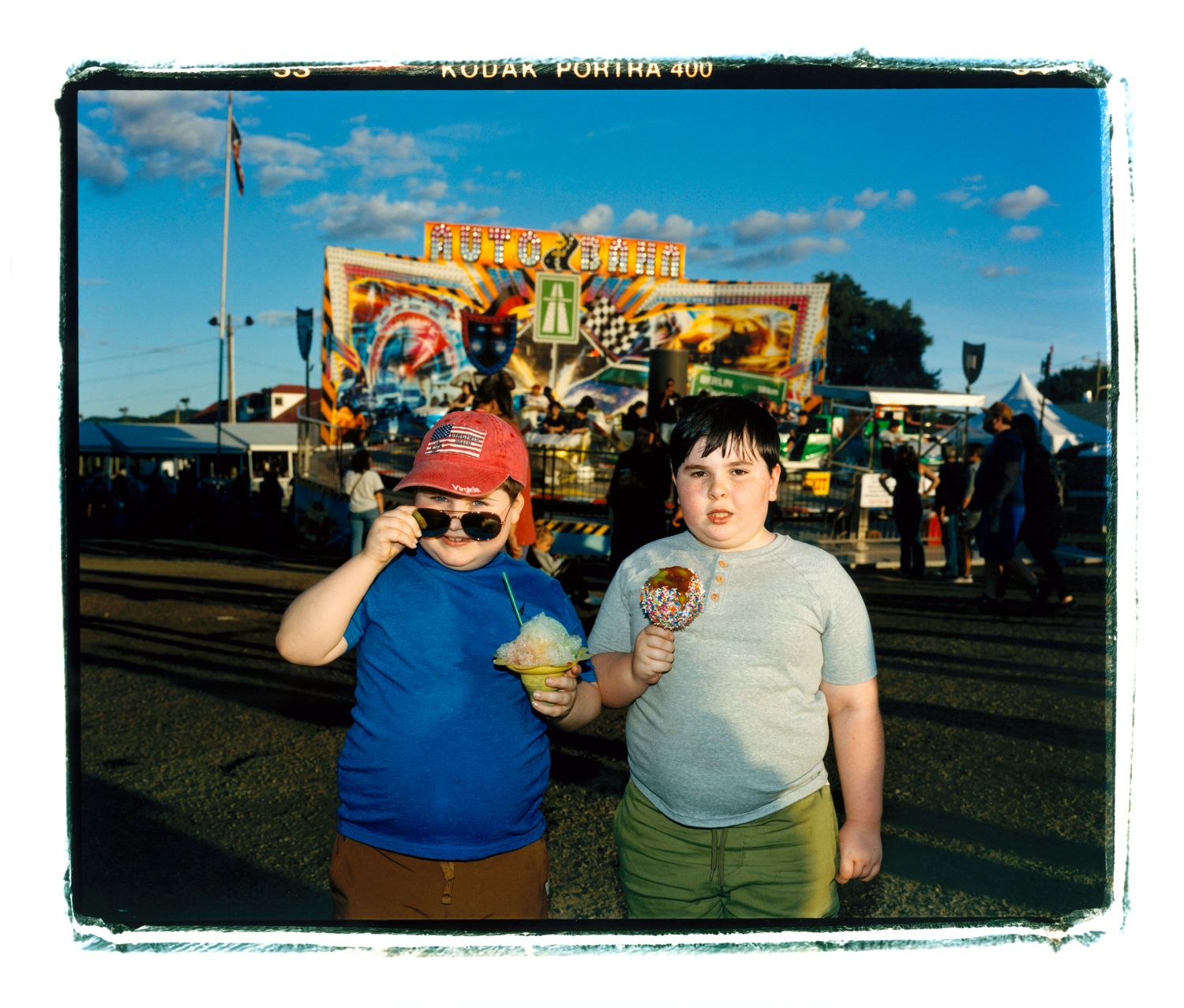 Milo and Rory, from the ongoing project "American Spectacle." American Spectacle is an ongoing documentation of the surreal and idealistic places where Americans gather. The project examines the rituals and niche celebrations that shape communities across the country, from county fairs to rodeos to armadillo races, revealing the strange yet endearing reasons that bring Americans together.