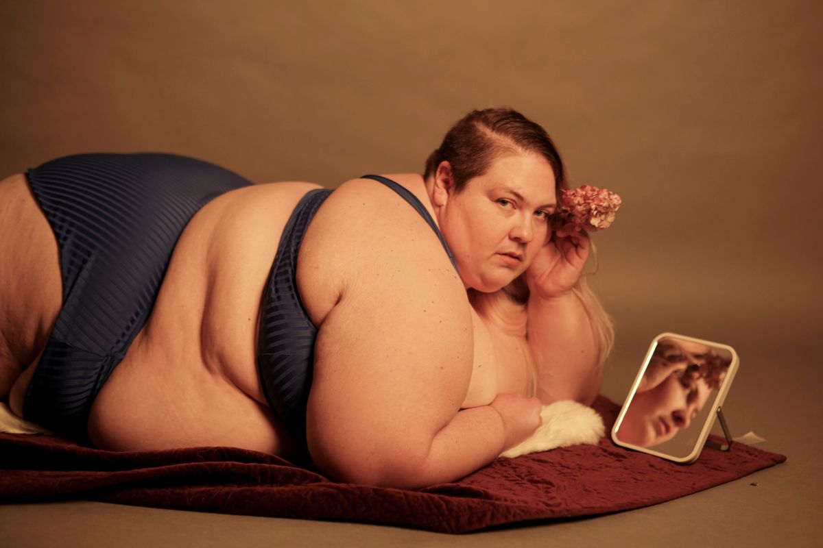 “A Person with a Flower” from the series Fearless portrays Lisa, a queer person who has learned to love their body in all its forms, scars, and possibilities of expression. Their presence radiates calm and ease — qualities that have grown out of self-acceptance. The image celebrates self-love as an act of freedom: the moment when a person no longer compares themselves, but instead comes to recognize who they are.